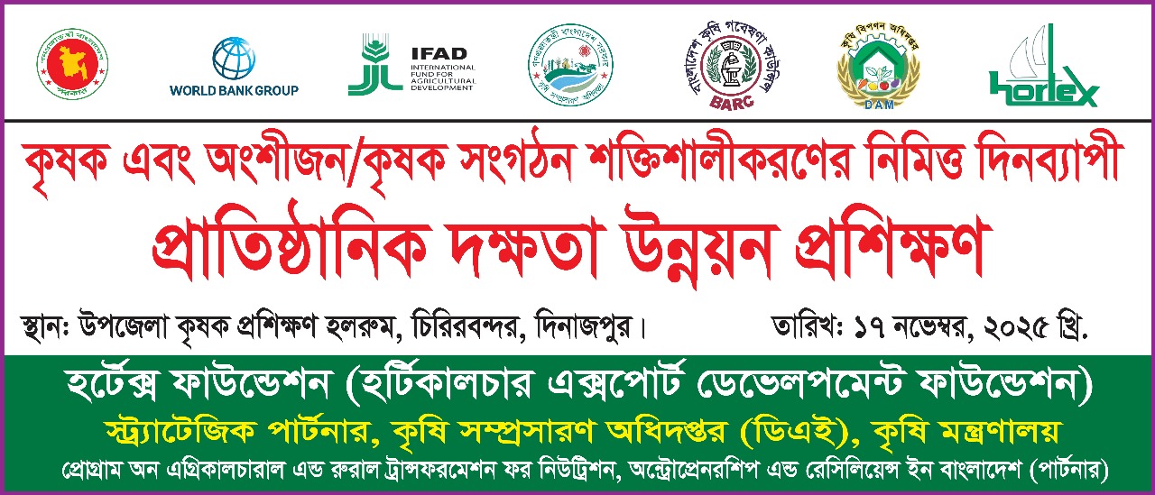 হর্টেক্স-পার্টনার এর আওতায় দিনব্যাপী প্রতিষ্ঠানিক দক্ষতা উন্নয়ন প্রশিক্ষণ